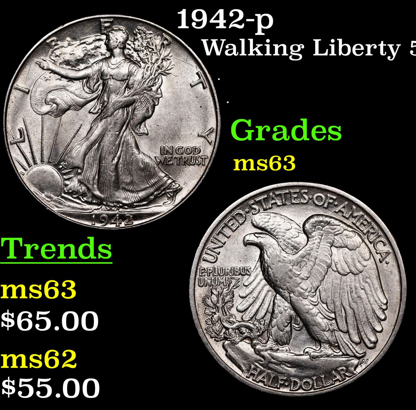 1942-p Walking Liberty Half Dollar 50c Grades Select Unc.