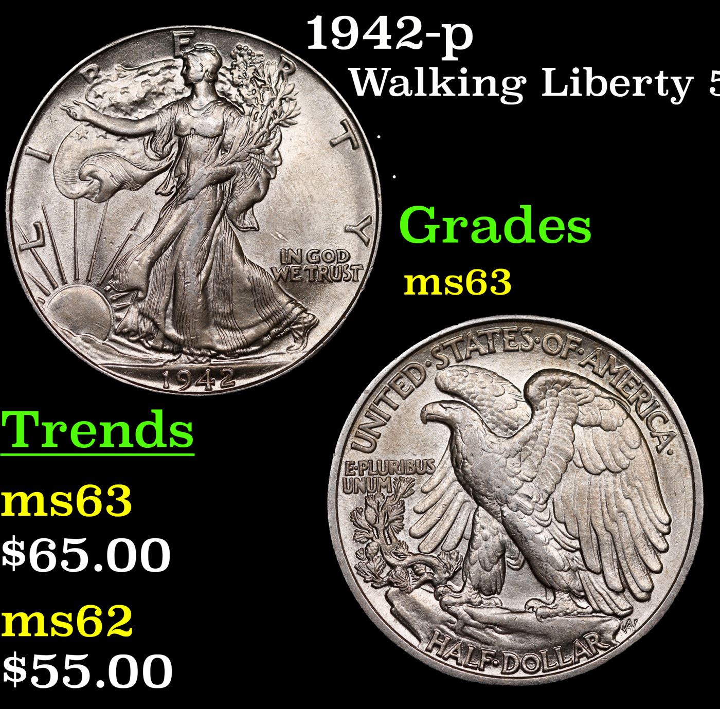 1942-p Walking Liberty Half Dollar 50c Grades Select Unc.