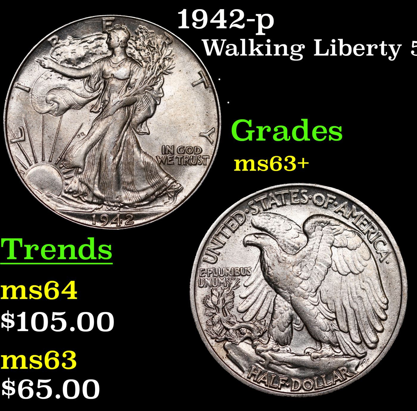 1942-p Walking Liberty Half Dollar 50c Grades Select+ Unc.