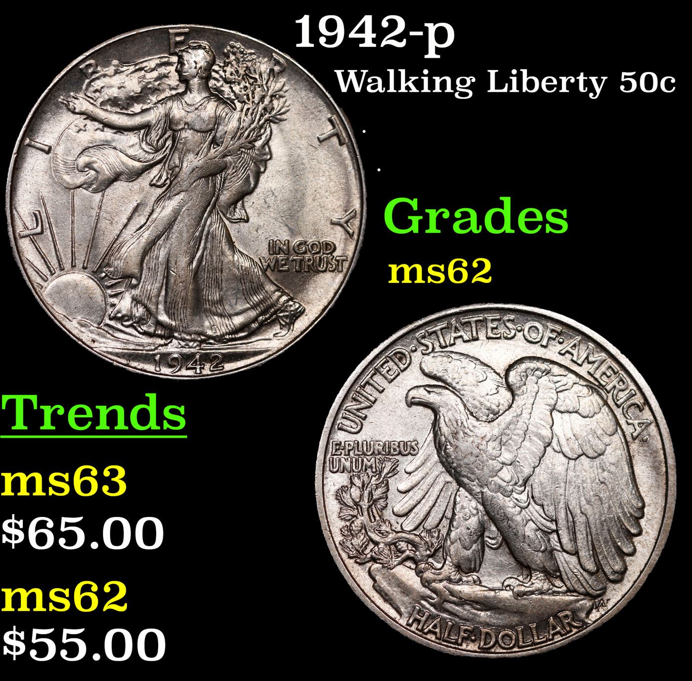 1942-p Walking Liberty Half Dollar 50c Grades Select Unc.