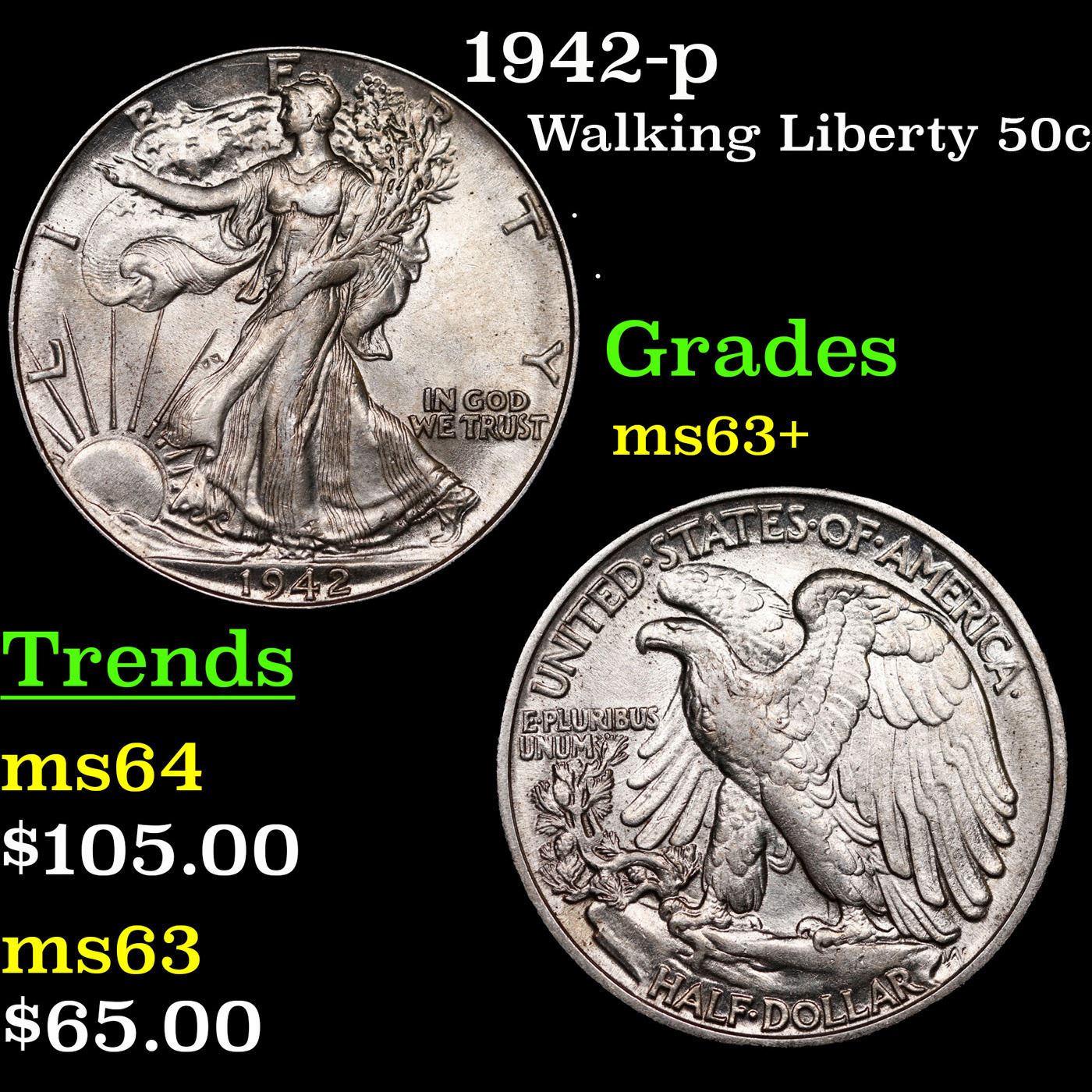 1942-p Walking Liberty Half Dollar 50c Grades Select+ Unc.