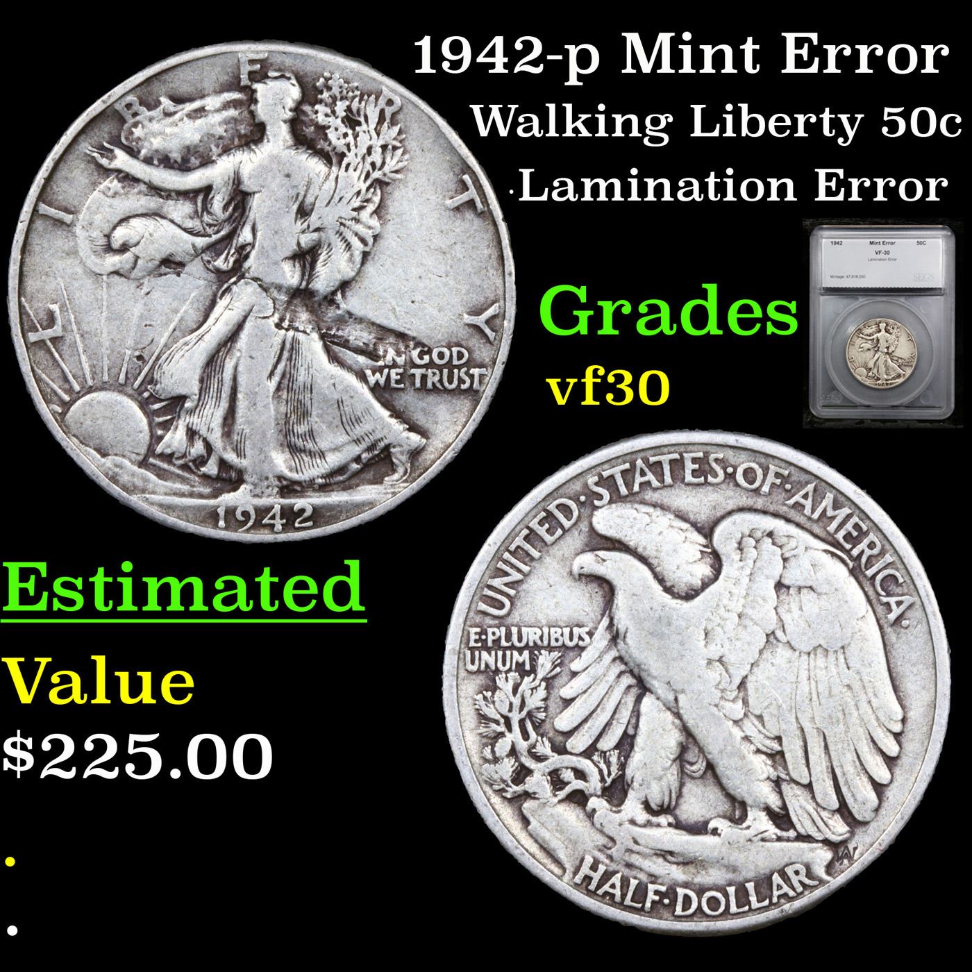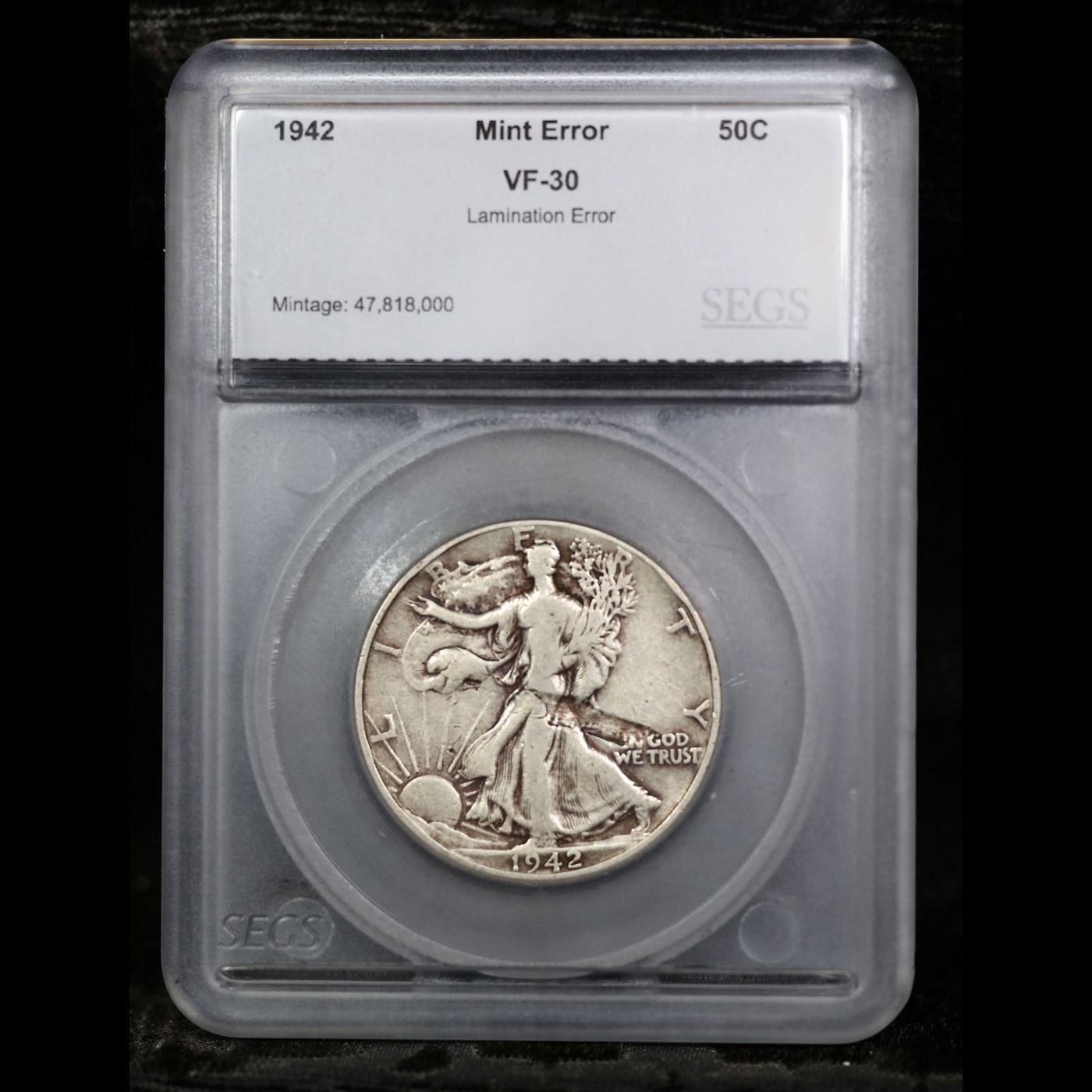 1942-p Mint Error Walking Liberty Half Dollar 50c Graded vf30 By SEGS.