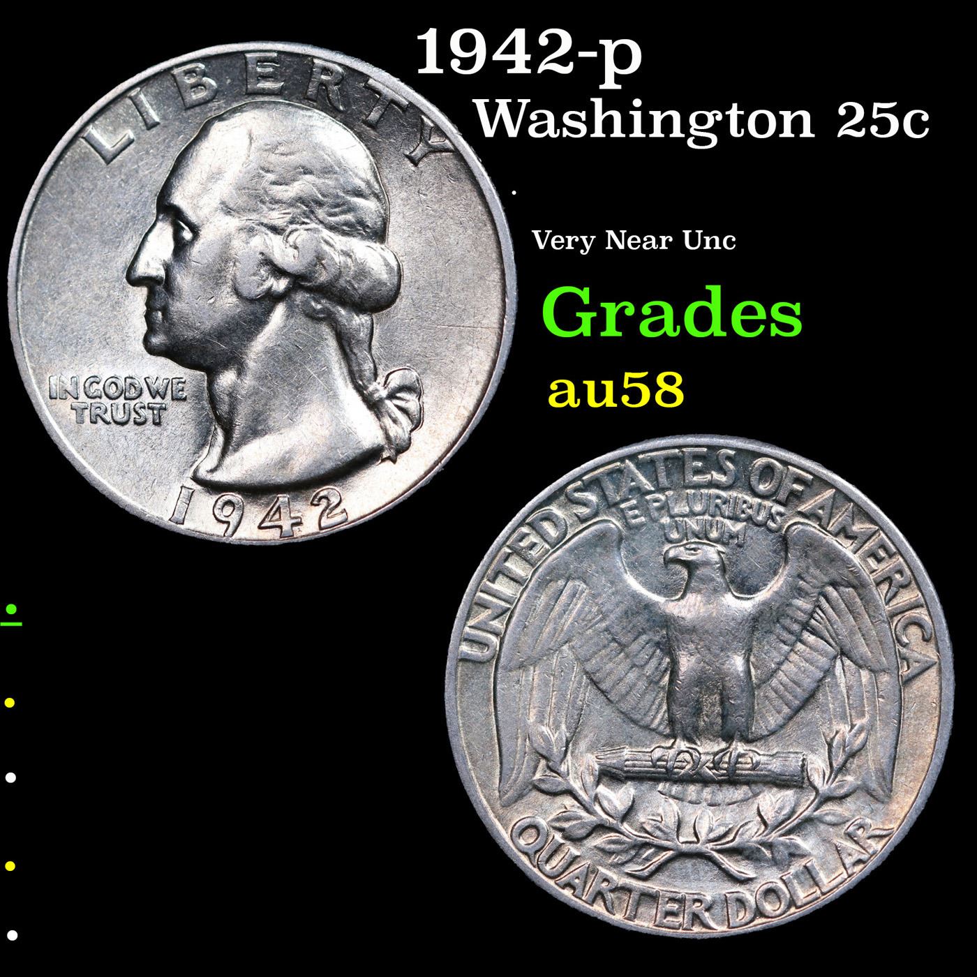 1942-p Washington Quarter 25c Grades Choice AU/BU Slider.