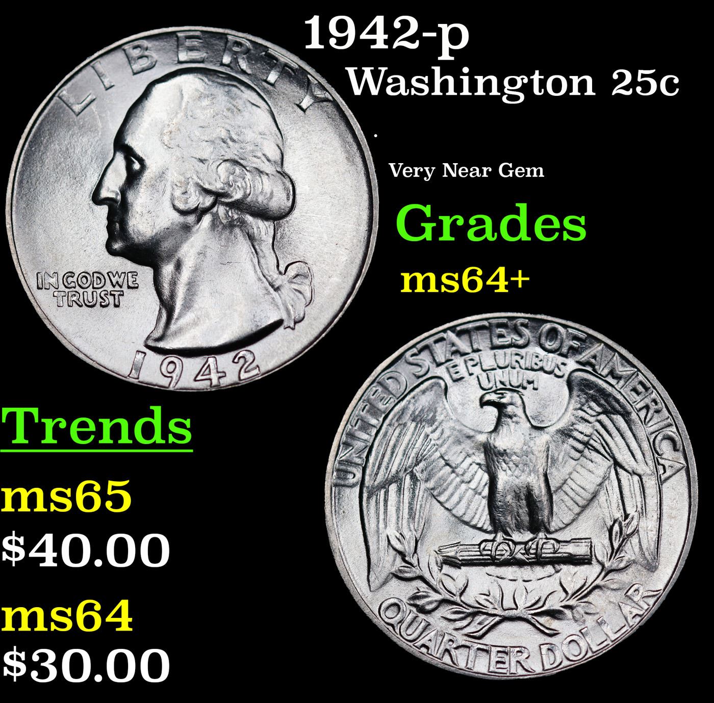 1942-p Washington Quarter 25c Grades Choice+ Unc.
