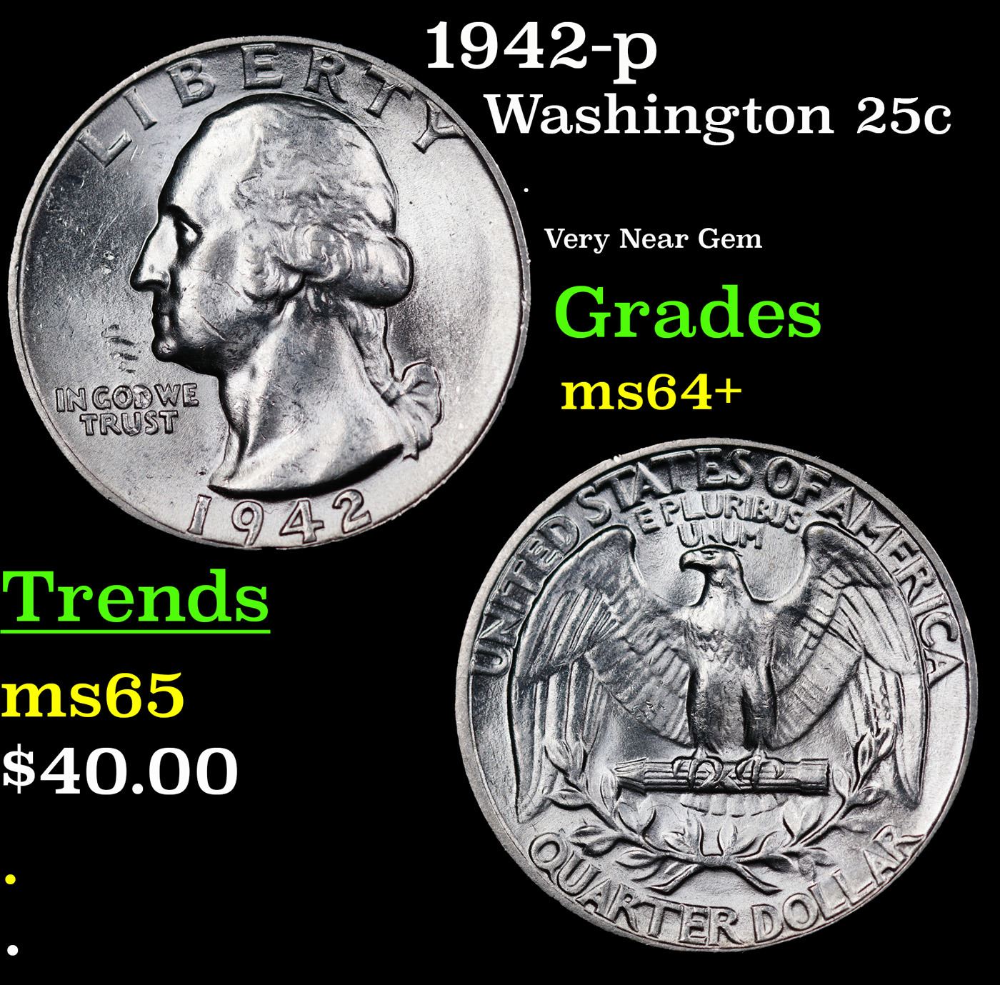 1942-p Washington Quarter 25c Grades Choice+ Unc.