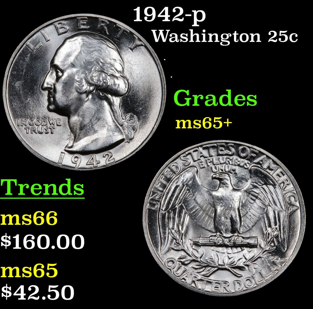 1942-p Washington Quarter 25c Grades GEM+ Unc.
