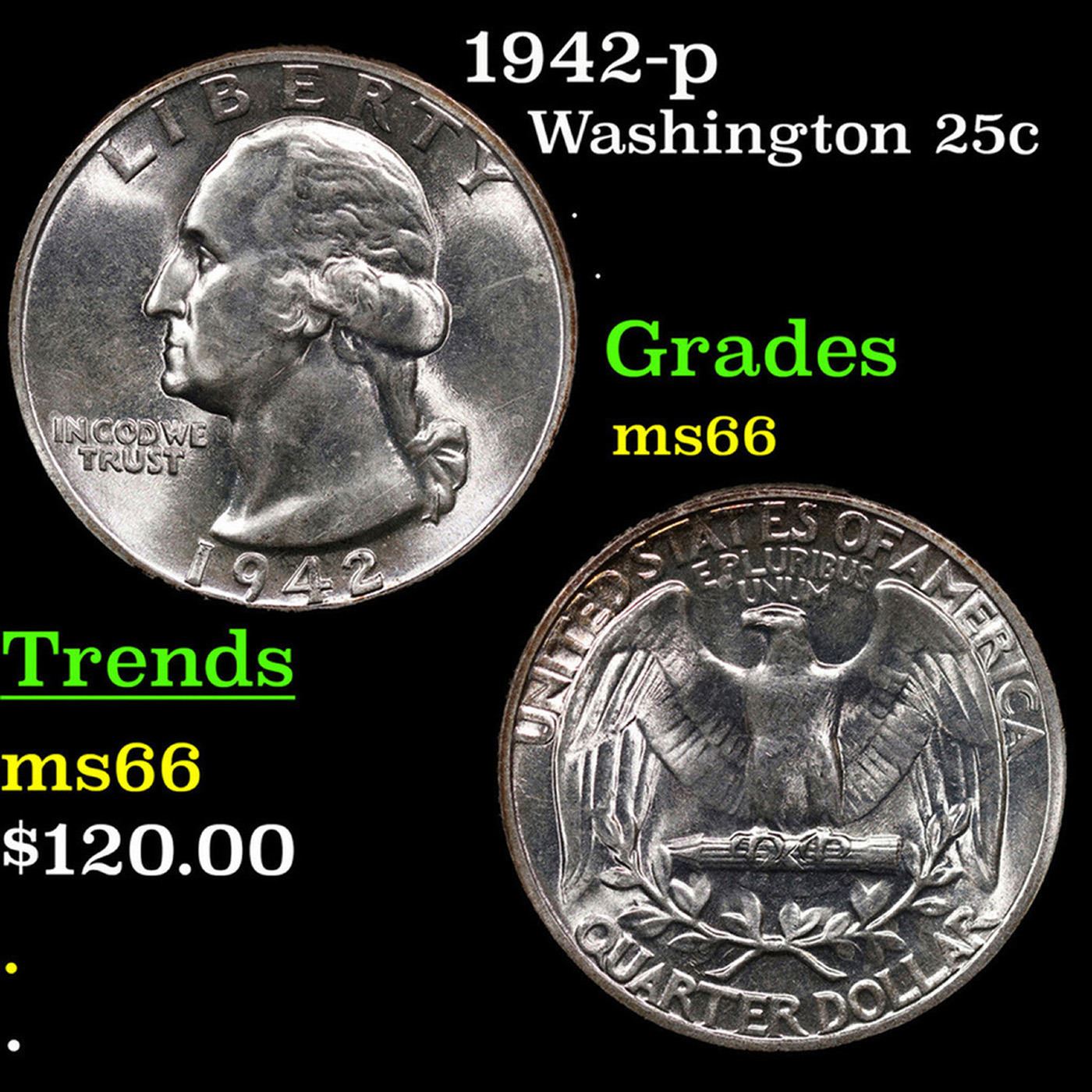 1942-p Washington Quarter 25c Grades GEM+ Unc.