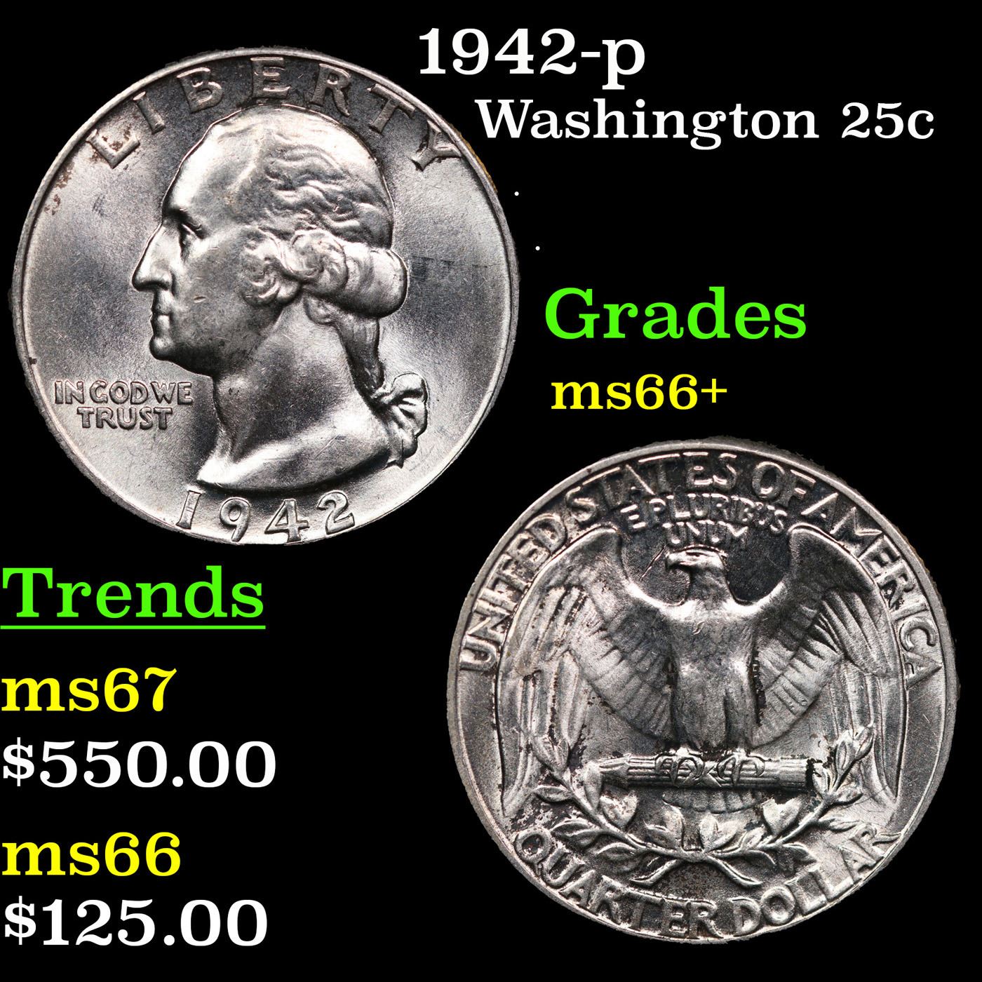 1942-p Washington Quarter 25c Grades GEM++ Unc.