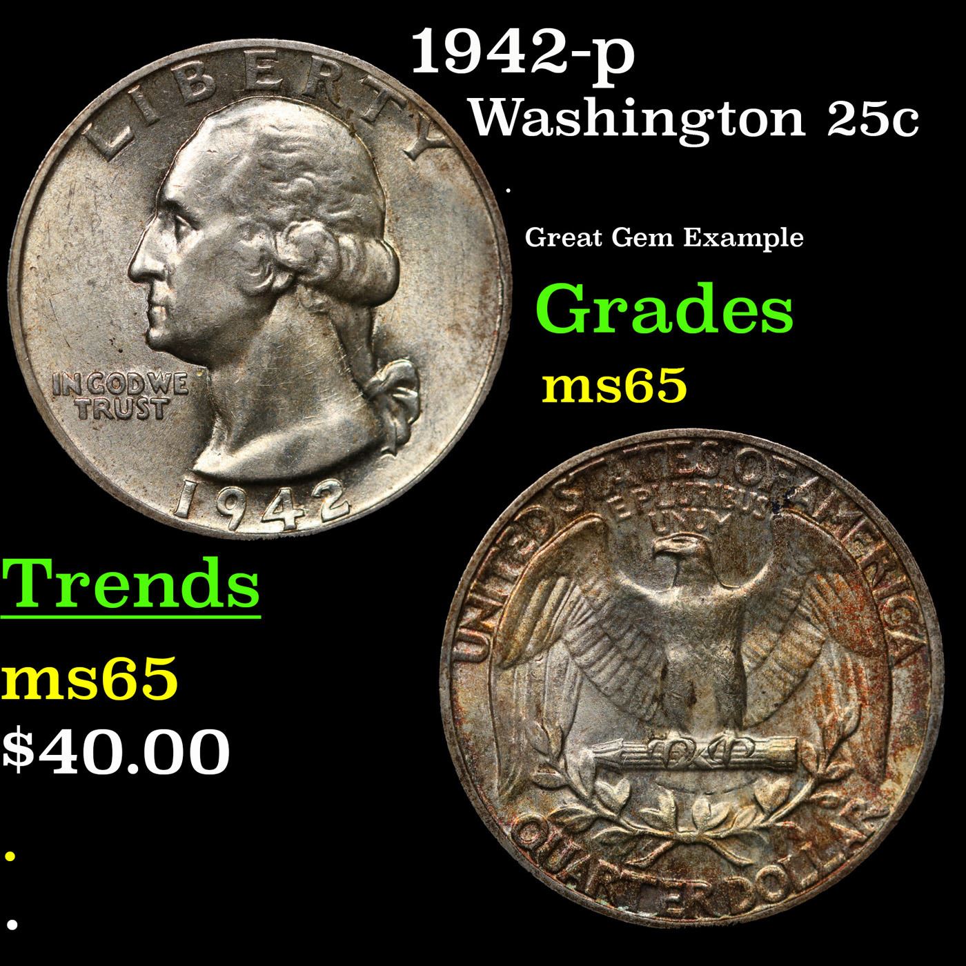 1942-p Washington Quarter 25c Grades GEM Unc.