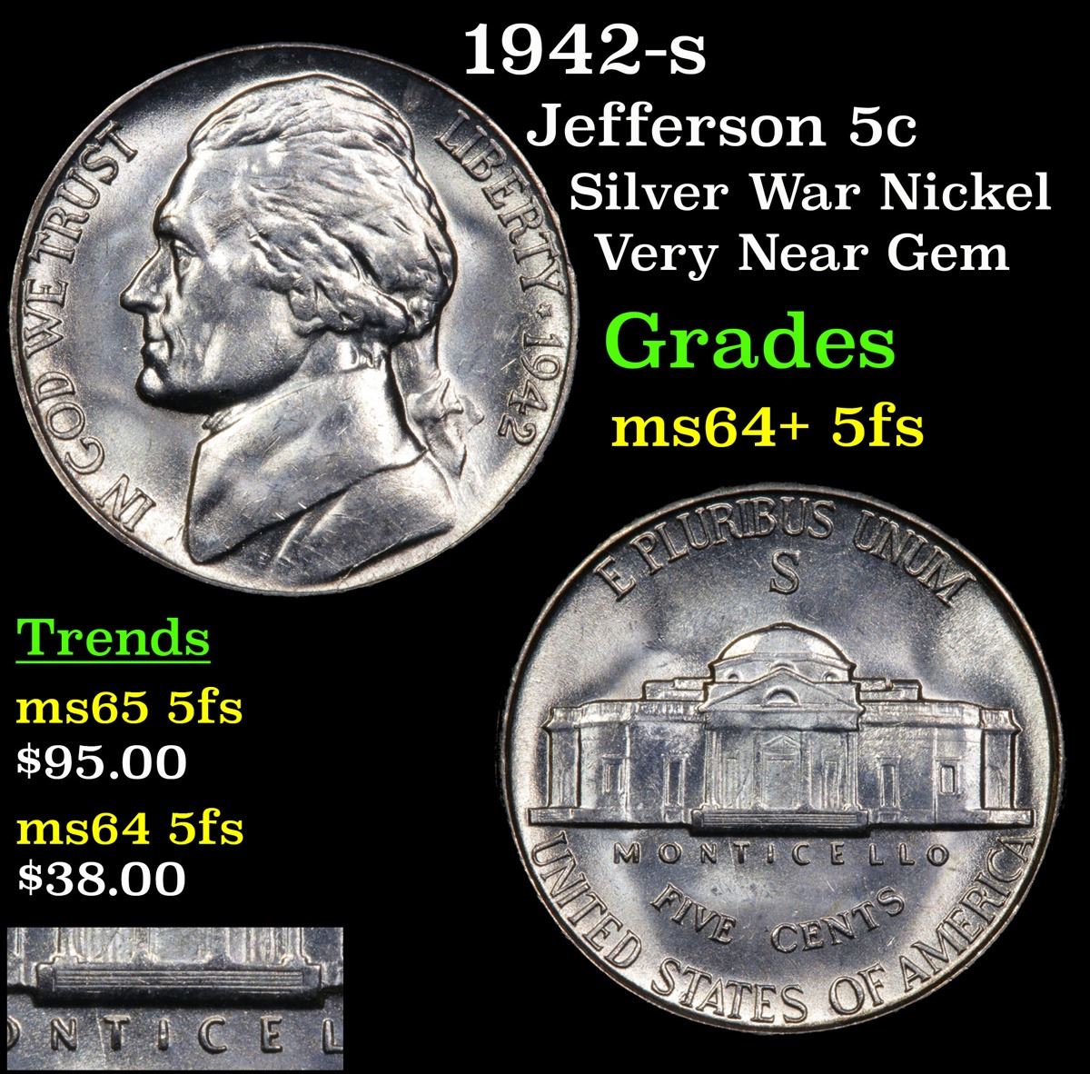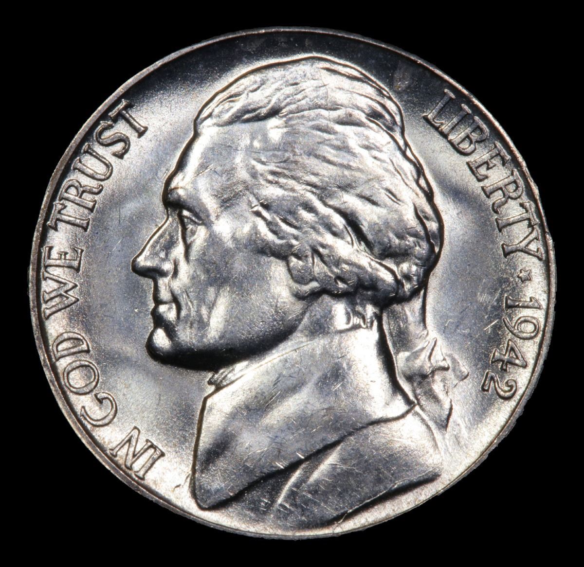 1942-s Jefferson Nickel 5c Grades Choice Unc+ 5fs.