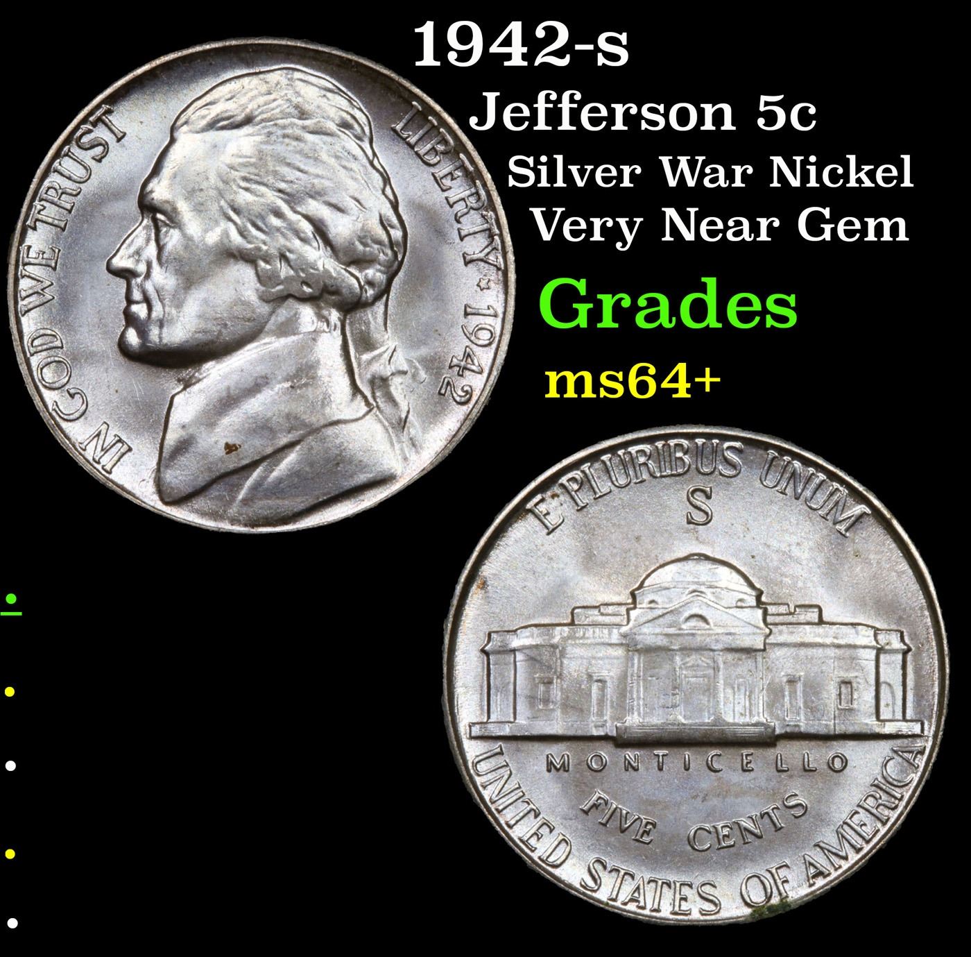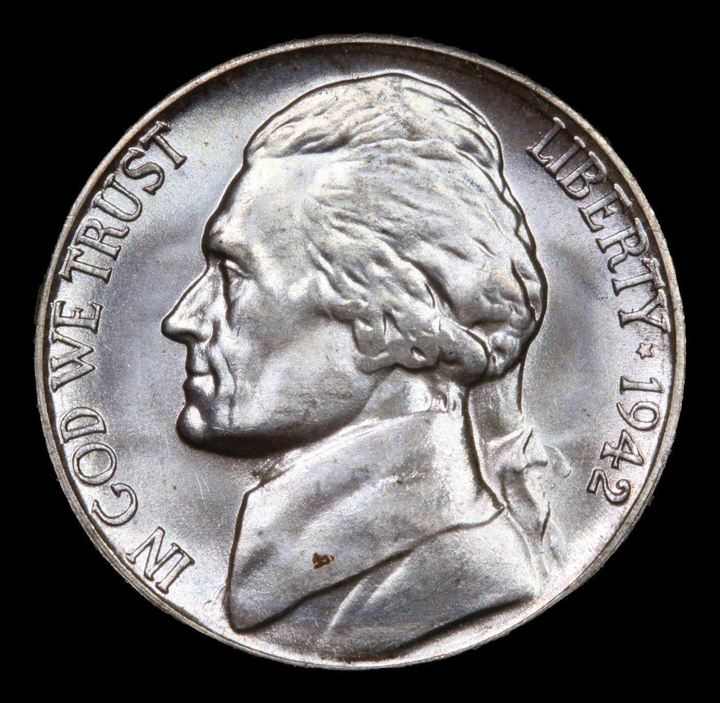 1942-s Jefferson Nickel 5c Grades Choice+ Unc.