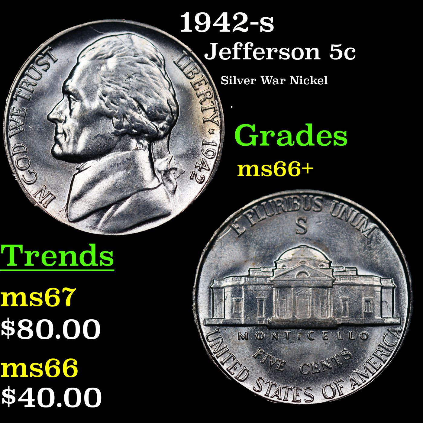 1942-s Jefferson Nickel 5c Grades GEM++ Unc.