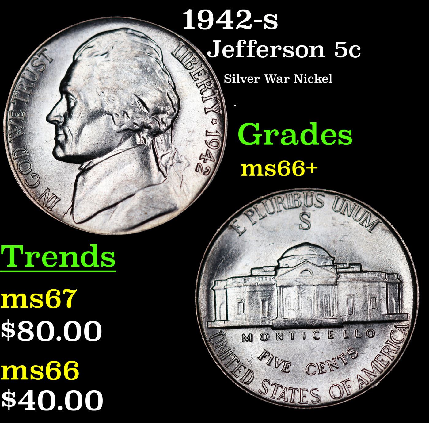 1942-s Jefferson Nickel 5c Grades GEM++ Unc.
