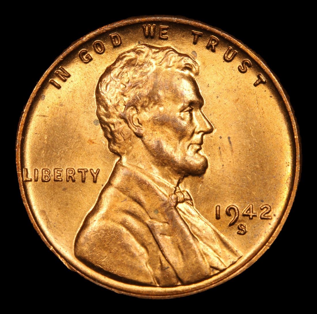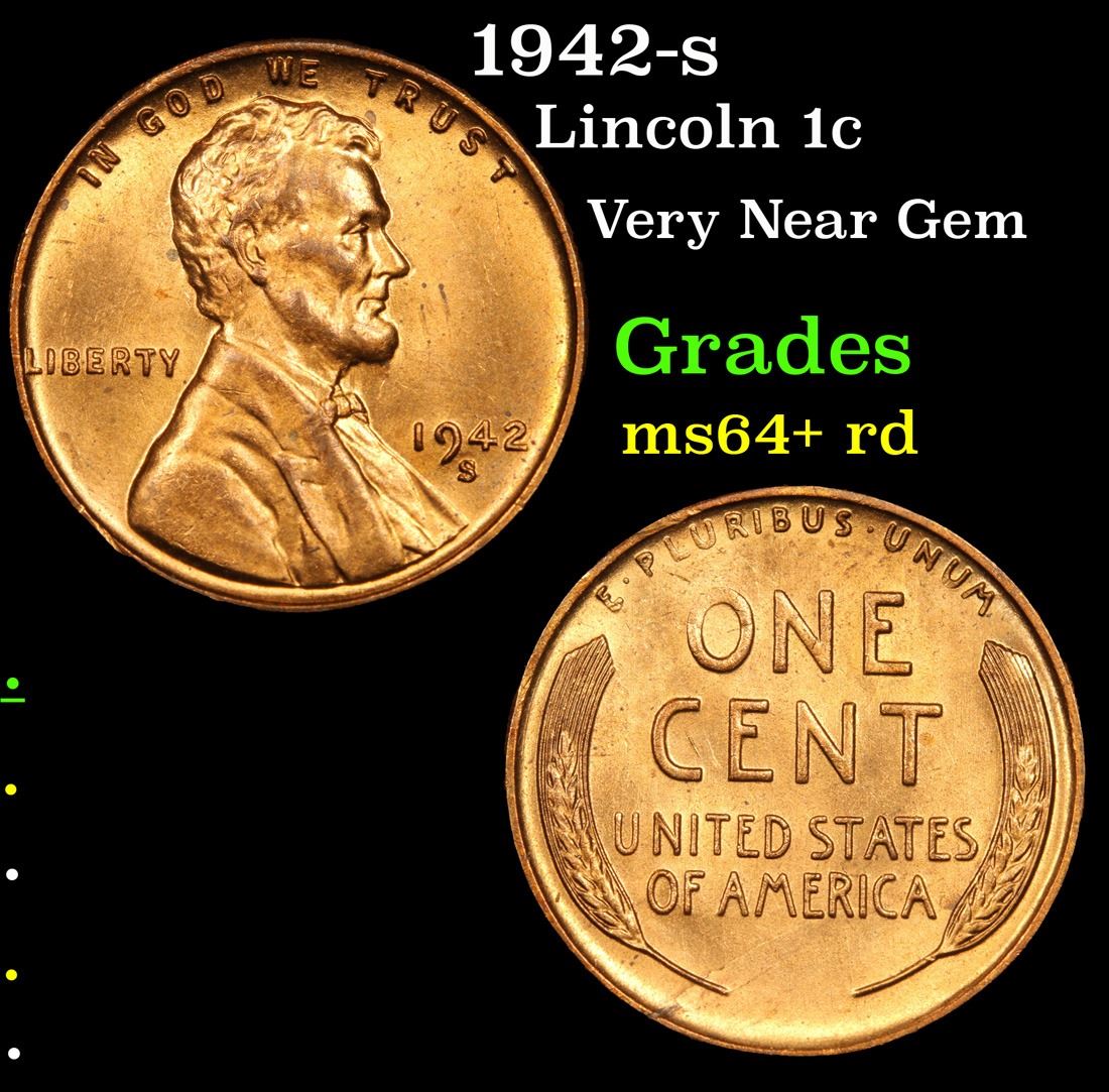 1942-s . Very Near Gem Lincoln Cent 1c Grades Choice+ Unc RD.