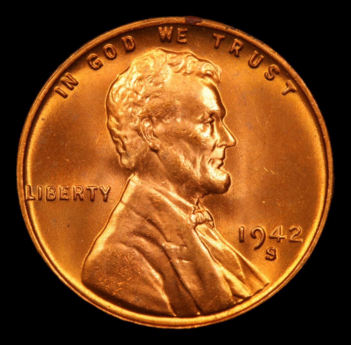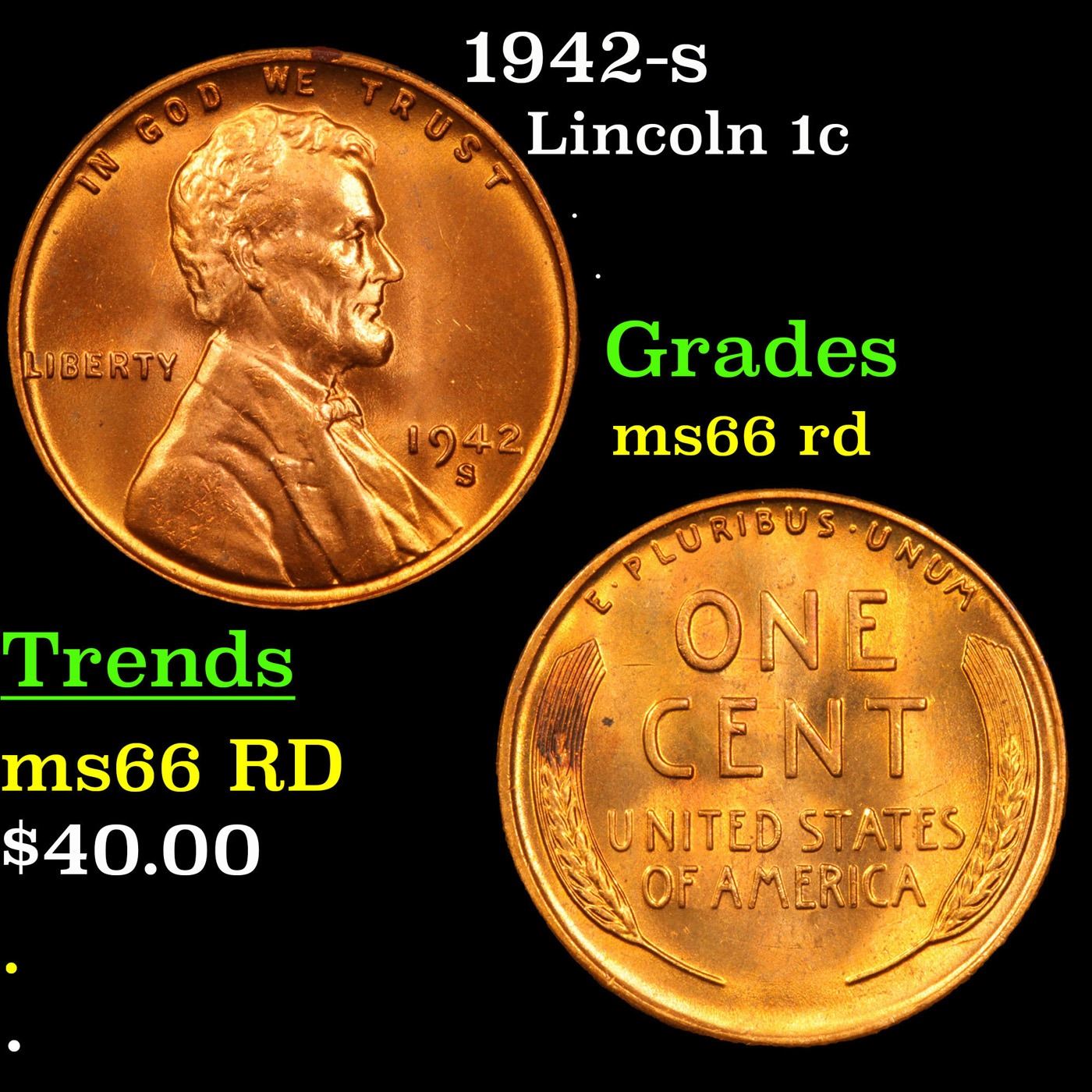 1942-s Lincoln Cent 1c Grades GEM+ Unc RD.