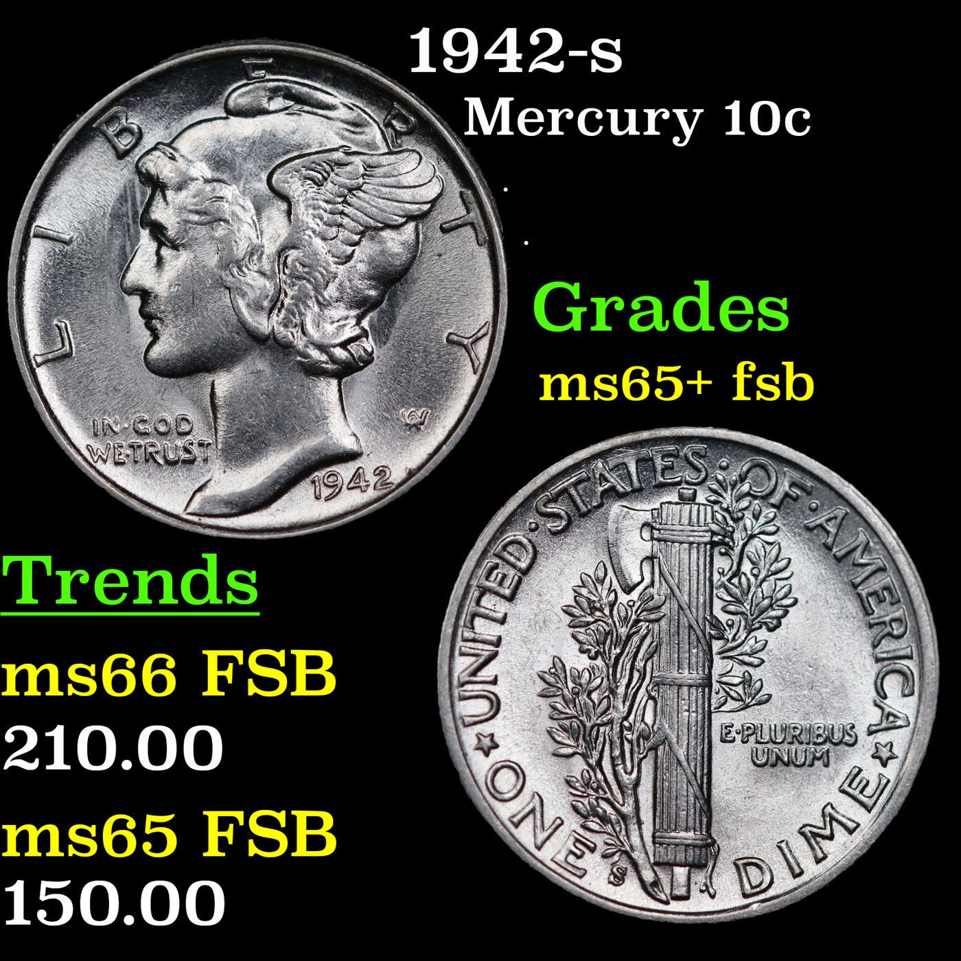 1942-s Mercury Dime 10c Grades GEM+ FSB.