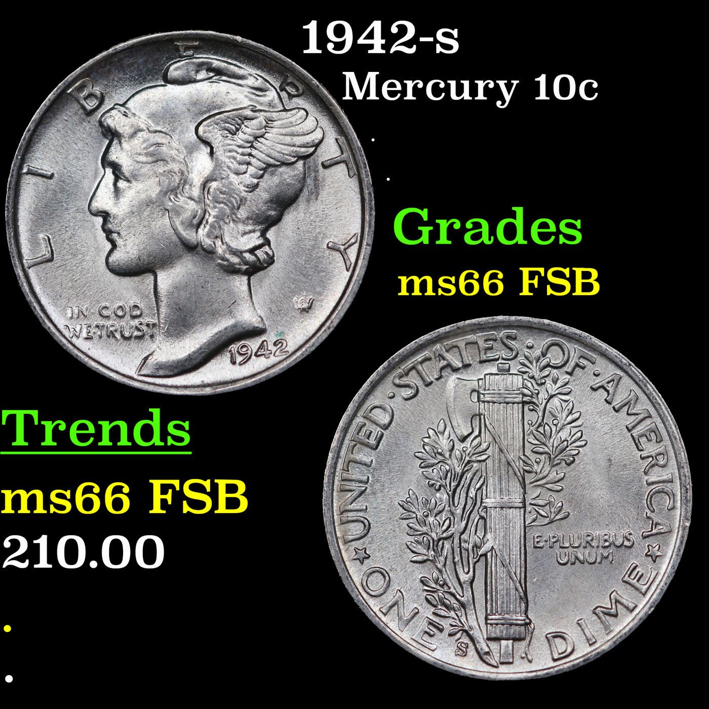 1942-s Mercury Dime 10c Grades GEM+ FSB.