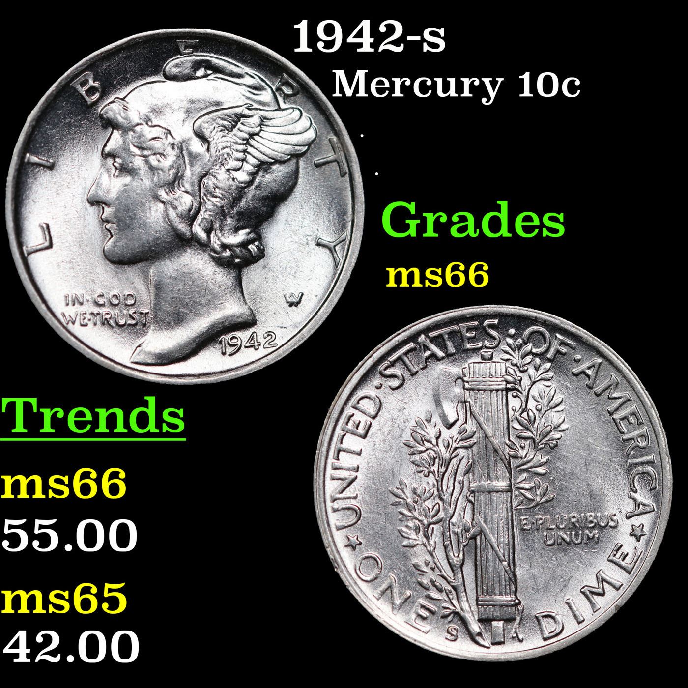 1942-s Mercury Dime 10c Grades GEM+ Unc.