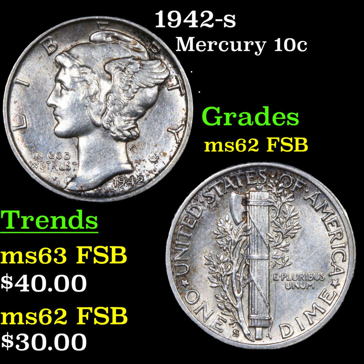 1942-s Mercury Dime 10c Grades Select Unc FSB.