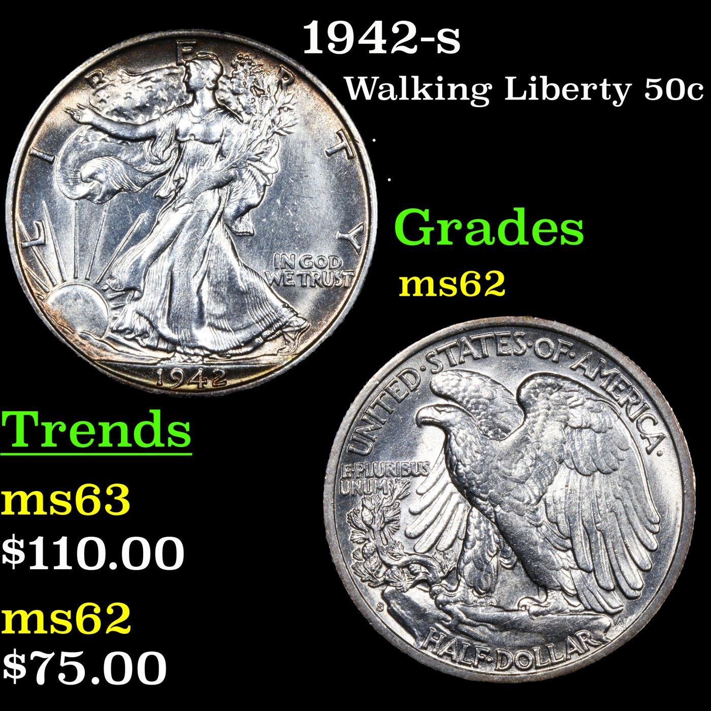 1942-s Walking Liberty Half Dollar 50c Grades Select Unc.
