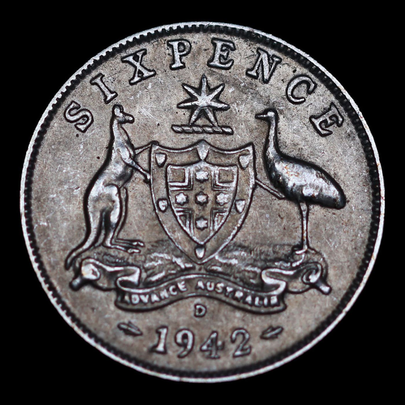 1942D Australia Sixpence 6p KM# 38 Grades AU, Almost Unc.