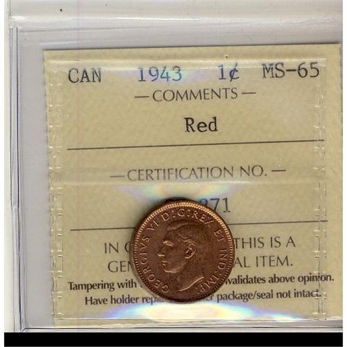 1943 1¢ ICCS MS65 Red, scarce this nice