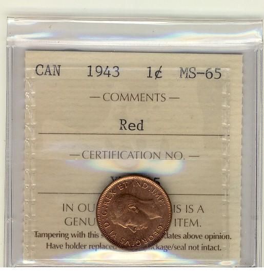 1943 1¢ ICCS MS65 Red.