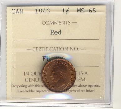 1943 1¢ ICCS MS65RD.