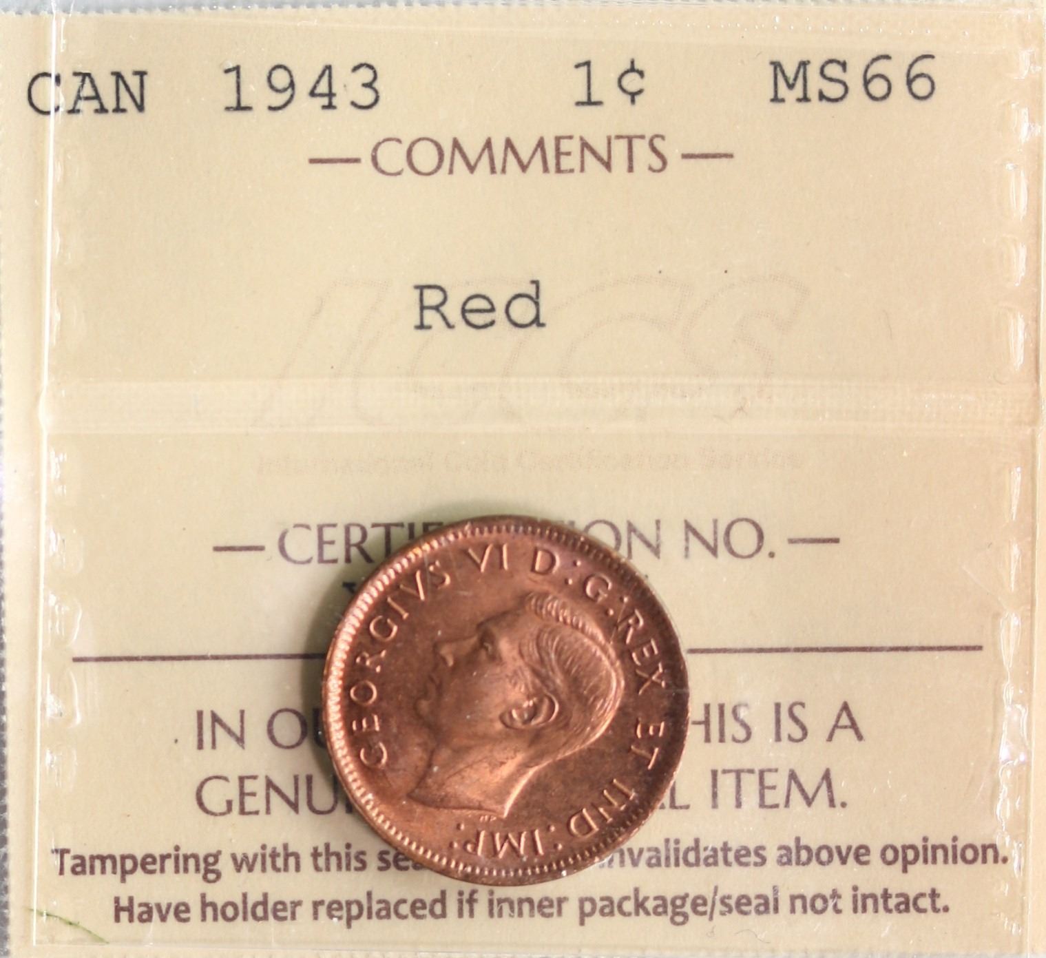 1943 1¢ ICCS Superb Gem Mint State-66RD. Gem 95% red example and fully lustrous example. Definitely in the Top 3 graded if not the Top issue. No examples above Gem Mint State-65RD listed in the PCGS Report . Should bring in a nice premium. We have only seen and handled one other example, which sold for $5,084 at our 2024 New Year's sale.