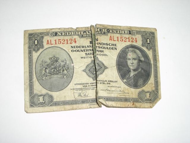 1943 1 NEDERLAND NOTE *RARE NOTE* Ripped at center!! ***Coin, Currency & All Items Listed in this auction - Grades, Conditions and Values are not Safe Deposit Coins LLC Responsibilty. Grades, Condition and Values are determined by Consigner(s) & Buyers ONLY***