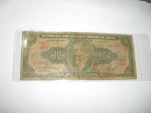 1943 10 DEZ CRUZEIROS Brazil Bank Note Serial # 042327 *Please Look at Picture to Determine Grade of Bill*!! ***Coin & Currency Grades, Conditions and Values are not Northern Colorado Estate Liquidators Responsibilty. Grades, Condition and Values are determined by Consigner(s) & Buyers ONLY***