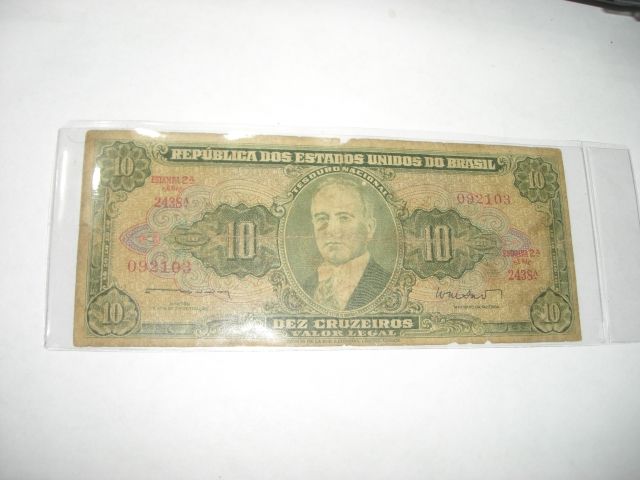 1943 10 DEZ CRUZEIROS Brazil Bank Note Serial # 092103 *Please Look at Picture to Determine Grade of Bill*!! ***Coin & Currency Grades, Conditions and Values are not Northern Colorado Estate Liquidators Responsibilty. Grades, Condition and Values are determined by Consigner(s) & Buyers ONLY***