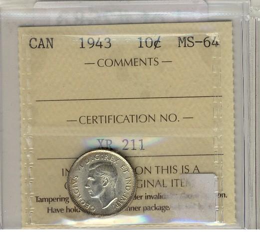 1943 10¢ ICCS MS64