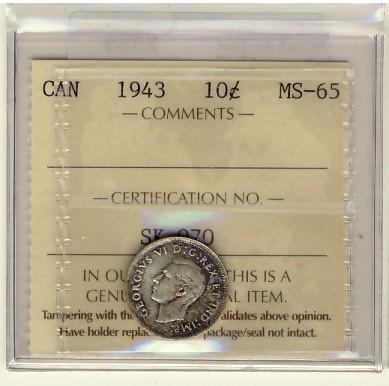 1943 10¢ ICCS MS65. Nice eye appeal.