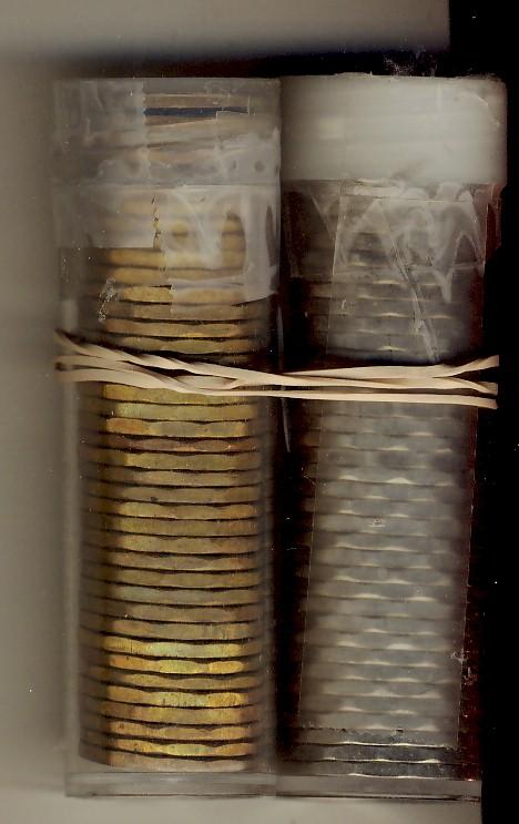 1943 & 1951 5¢ UNC Rolls. Includes 40 of each date grading AU to UNC63. Should be viewed.