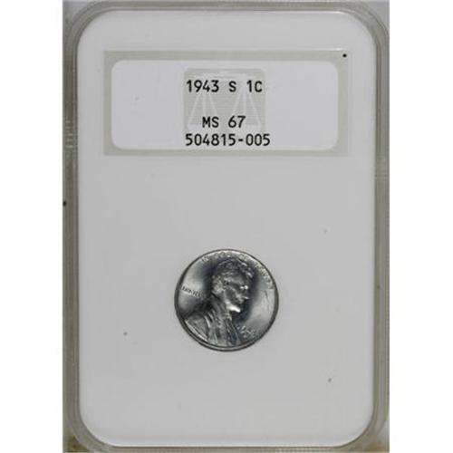 <B>1943 1C PDS Set MS67 NGC.</B></I><BR><BR><B>Coin Engraver:</B> Victor D. Brenner<BR><BR><b>Shipping:</b> Coins & Currency (<a target="_blank" href="http://www.heritageauctions.com/common/shipping.php">view shipping information</a>)