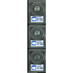 1943 1C MS67 PCGS, bold, lustrous, and undisturbed <B>1943 1C MS67 PCGS,</B></I> bold, lustrous, and undisturbed, exceptional quality, a tail on the T in CENT from a mint-made die break; <B>1943-D MS67 PCGS,</B></I> a couple of tiny, faint spots but otherwise perfect; and a <B>1943-S MS67 PCGS,</B></I> an outstanding Superb Gem that has a prooflike reverse.<BR><I>From The Dennis Dewart Collection.</B></I> 3 Coins <BR><BR><B>Important notice:</B> Heritage usually auctions material at the rate of 200-250 lots per hour. On some occasions eBay Live bid software or the Internet may not be able to keep up with the pace of the auction. We recommend placing a realistic absentee bid now as insurance to avoid disappointment. Occasionally the auctioneer may eliminate or reject an eBay Live bid, and the auctioneer may also reopen a lot after the close of the eBay live bidding (usually because we missed an audience bid), and may reject your bid even if it shows you as the winning bidder. By bidding via eBay Live, you agree that Heritage may award the lot to another bidder at its sole discretion under the circumstances described above or any other reasonable circumstances. Since eBay bids are not shown to us until we open the lot on the floor, we treat those bids just like floor bids. In most cases the floor responds before the eBay bid is presented to us, due to Internet lag time, so for consistency we have made it a policy that floor bids are always considered first over tie eBay live bids. Also please note that all Heritage lots purchased through eBay Live carry a 20% Buyer's Premium. Please make sure you read the Terms and Conditions before you bid. This lot is being auctioned in conjunction with a live floor auction by Heritage Galleries & Auctioneers. All final auction and invoice information will be supplied by Heritage Galleries & Auctioneers, and all other information should be considered preliminary. Lot:5187