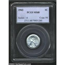 1943 1C MS68 PCGS. With fully brilliant luster and flash, this specimen stands in elite company atop