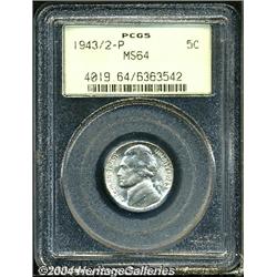 <B>1943/2-P<5C> MS64 PCGS.</B></I> The stroke of a 2 is readily observed within the lower loop of the 3 in the date. Sharply struck, with touches of olive color on the obverse, and rose toning on the reverse. The steps are about 3/4 defined. Population: 84 in 64, 94 finer (9/04). <BR><BR><B>Important notice:</B> Heritage usually auctions material at the rate of 200-250 lots per hour. On some occasions eBay Live bid software or the Internet may not be able to keep up with the pace of the auction. We recommend placing a realistic absentee bid now as insurance to avoid disappointment. Occasionally the auctioneer may eliminate or reject an eBay Live bid, and the auctioneer may also reopen a lot after the close of the eBay live bidding (usually because we missed an audience bid), and may reject your bid even if it shows you as the winning bidder. By bidding via eBay Live, you agree that Heritage may award the lot to another bidder at its sole discretion under the circumstances described above or any other reasonable circumstances. Since eBay bids are not shown to us until we open the lot on the floor, we treat those bids just like floor bids. In most cases the floor responds before the eBay bid is presented to us, due to Internet lag time, so for consistency we have made it a policy that floor bids are always considered first over tie eBay live bids. Also please note that all Heritage lots purchased through eBay Live carry a 20% Buyer's Premium. Please make sure you read the Terms and Conditions before you bid.