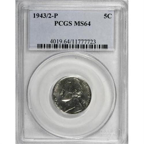 <B>1943/2-P 5C MS64 PCGS.</B></I> PCGS Population (89/108). NGC Census: (45/69). Mintage: 271,164,992. Numismedia Wsl. Price for NGC/PCGS coin in MS64: $400. (#4019)<BR><BR><B>Coin Engraver:</B> Felix Schlag<BR><BR><b>Shipping:</b> Coins & Currency (<a target="_blank" href="http://www.heritageauctions.com/common/shipping.php">view shipping information</a>)