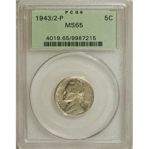 <B>1943/2-P 5C MS65 PCGS.</B></I> PCGS Population (78/29). NGC Census: (36/33). Mintage: 271,164,992. Numismedia Wsl. Price for NGC/PCGS coin in MS65: $550. (#4019)<BR><BR><B>Coin Engraver:</B> Felix Schlag<BR><BR><b>Shipping:</b> Coins & Currency (<a target="_blank" href="http://www.heritageauctions.com/common/shipping.php">view shipping information</a>\)