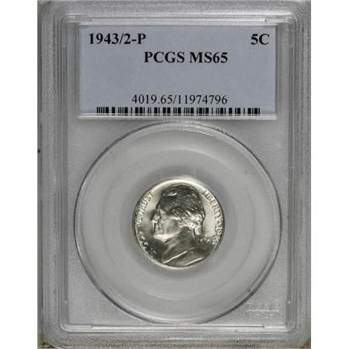 <B>1943/2-P 5C MS65 PCGS.</B></I> FS-028. The lower half of the underdigit 2 is plain beneath the 3 on this Gem example. Strongly lustrous with only a hint of gold-rose patina that visits the fields. The well struck devices are essentially brilliant.<BR><BR><B>Coin Engraver:</B> Felix Schlag<BR><BR><b>Shipping:</b> Coins & Currency (<a target="_blank" href="http://www.heritageauctions.com/common/shipping.php">view shipping information</a>)