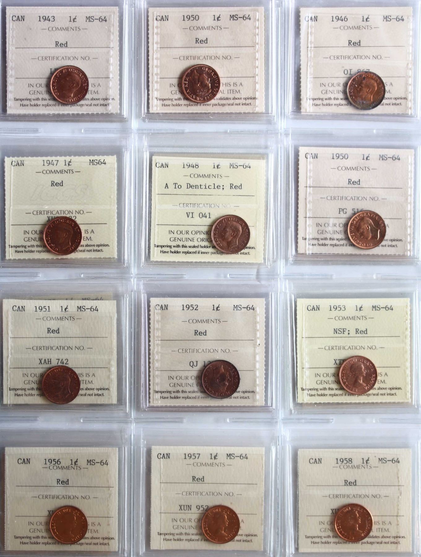 1943-2009 1¢ All 22 coins ICCS Very Choice Mint State-64 Red. Includes some better and interesting varieties.