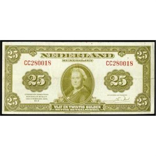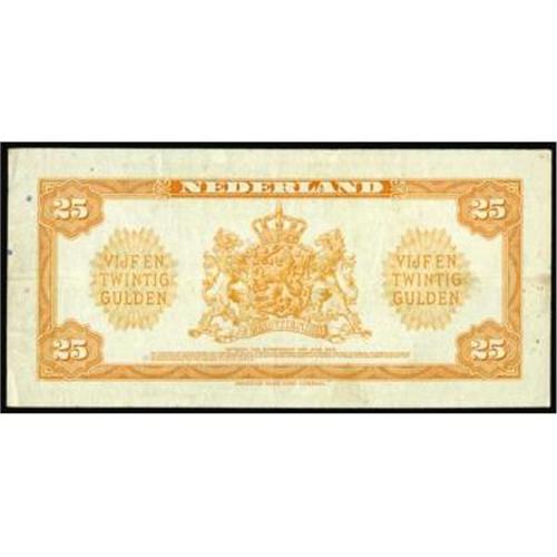 <style type="text/css"> body, td, th { font-family: Arial, Helvetica, sans-serif; font-size: 12px; color: #482424; margin: 0px; padding: 0px; } #header { background-image: url(http://www.bowersandmerena.com/ebay/images/template_v3_01.gif); clear: both; background-color: #590303; border-top-width: 2px; border-top-style: solid; border-top-color: #B38C4F; } #header #header_wrapper { height: 75px; clear: both; width: 800px; margin-right: auto; margin-left: auto; background-image: url(http://www.bowersandmerena.com/ebay/images/template_v3_03.gif); background-repeat: no-repeat; background-position: right; color: #F3EDCC; } #header #header_wrapper #header_logo { float: left; height: 75px; width: 444px; background-image: url(http://www.bowersandmerena.com/ebay/images/template_v3_02.gif); background-repeat: no-repeat; font-size: 10px; text-transform: capitalize; color: #B38C4F; } #header #header_wrapper #header_right { float: left; height: 75px; width: 356px; text-align: right; } #header #header_wrapper #header_right #headerLoginBtn { margin-bottom: 30px; } #header #header_wrapper #header_right input#txtSearch { color: #B49056; border: 1px solid #B49056; width: 175px; padding-top: 3px; padding-right: 3px; padding-bottom: 4px; padding-left: 3px; } #nav { height: 37px; background-image: url(http://www.bowersandmerena.com/ebay/images/template_v3_05.gif); clear: both; } #nav #nav_wrapper { height: 35px; width: 800px; margin-right: auto; margin-left: auto; border-left-width: 1px; border-left-style: solid; border-left-color: #B38C4F; } #nav #nav_wrapper a { padding-right: 15px; padding-left: 15px; border-right-width: 1px; border-right-style: solid; border-right-color: #B38C4F; height: 25px; padding-top: 10px; display: block; float: left; text-decoration: none; font-weight: bold; color: #5D0303; } #nav #nav_wrapper a:hover { color: #B38C4F; } #nav #nav_wrapper #search { float: right; padding-top: 7px; } #nav #nav_wrapper #search #txtSearch { font-family: Arial, Helvetica, sans-serif; font-size: 10px; text-transform: uppercase; color: #D2AE75; border: 1px solid #B38C4F; padding: 3px; } #content_bgd { background-image: url(http://www.bowersandmerena.com/ebay/images/template_v3_09.gif); background-repeat: repeat-y; background-position: center; padding-top: 15px; padding-bottom: 15px; background-color: #FBFBDB; } #content_wrapper { clear: both; height: auto; width: 800px; margin-right: auto; margin-left: auto; } .LotDetailWhite { line-height:normal; font-size:13px; font-family: arial,helvetica,sans-serif; color: White; font-weight: bold; } .LotDetailInformation { line-height:normal; font-size: 13px; font-family: arial,helvetica,sans-serif; } .LotDetailMessage { line-height:normal; font-size: 13px; font-family: arial,helvetica,sans-serif; color: red; } } tr.HeaderAuctionTitle td { color: #000000; font-weight: bold; padding: 2px; background-image: url(http://www.bowersandmerena.com/ebay/images/template_v3_05.gif); background-repeat: repeat-x; border-bottom-width: 1px; border-bottom-style: solid; border-bottom-color: #B38C4F; } table.AuctionSummary a, table.AuctionSummary a:link, table.AuctionSummary a:visited { color: #0000FF; text-decoration: none; } } td.tableHeaderLeft { border-left-width: 1px; border-left-style: solid; border-left-color: #B38C4F; } td.tableHeaderRight { border-right-width: 1px; border-right-style: solid; border-right-color: #B38C4F; } td.tableCellMiddle { border-left-width: 1px; border-left-style: solid; border-left-color: #B38C4F; border-right-width: 1px; border-right-style: solid; border-right-color: #B38C4F; padding: 5px; } tr.footer td { border-top-width: 1px; border-top-style: solid; border-top-color: #B38C4F; } </style> </head> <body> <div id="header"> <div id="header_wrapper"> <div id="header_logo"> </div> <div id="header_right"> </div> </div> </div> <div id="nav"> <div id="nav_wrapper"> <a href="http://www.bowersandmerena.com">Our eBayLive Auctions</a> <a href="#PaymentInfo">Payment Information</a> <a href="#ShippingInfo">Shipping Information</a> <a href="#About">About Bowers and Merena</a> </div> </div> <div id="content_bgd"> <div id="content_wrapper"> <table width="100%" border="0" cellpadding="5" cellspacing="0" class="AuctionSummary"> <tbody> <tr class="HeaderAuctionTitle" style="height: 25px;"> <td align="left" class="tableHeaderLeft" > </td> <td align="center" class="tableHeaderRight"> <span style="font-size: large;">Lot #2880. Netherlands. 1943 25 Gulden. Muntbiljetten State Note. Very Fine.</span> </td> </tr> <tr> <td colspan="3" class="tableCellMiddle"> P-67. A beautiful example of the second scarcest denomination from the series. This 25 Gulden note shows a deep olive ink on the face which is a nice change of pace from the typical colors seen on notes. The reverse is the standard orange which graces every denomination of the series. Strong red overprints make great contrast to the primary inks and the pleasing circulated grade of Very Fine which this note is in leaves great appeal to the collector.