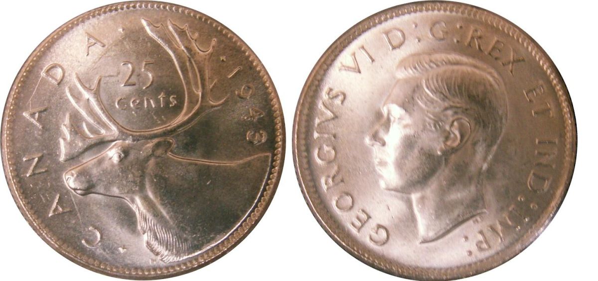 1943 25¢ ICCS MS66. Superb lustre and blast white in colour. Tied for Top 4 graded.