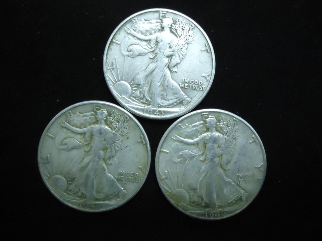 1943,43 & 46-D WALKING LIBERTY HALF DOLLARS