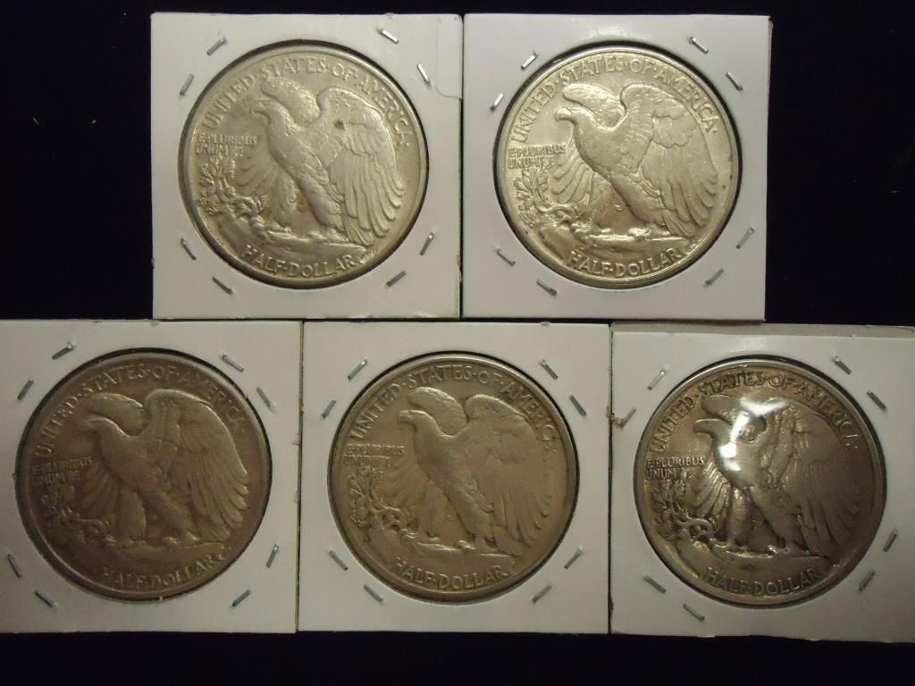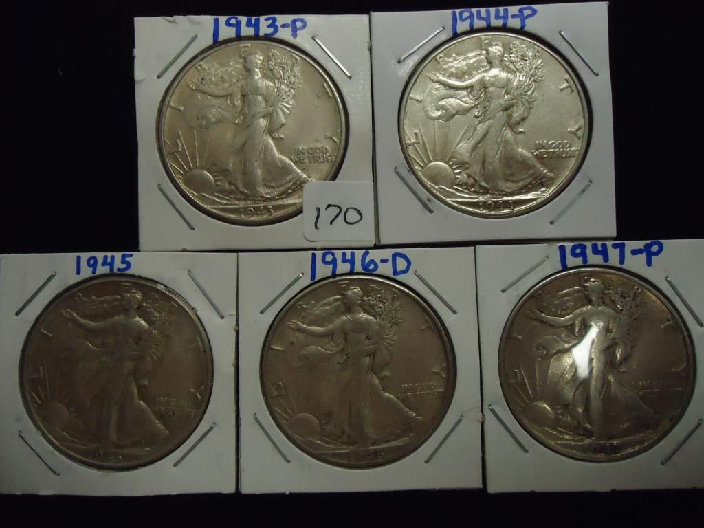 1943,44,45,46-D & 47 WALKING LIBERTY HALF DOLLARS