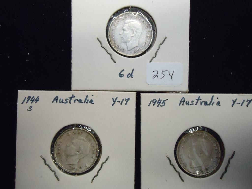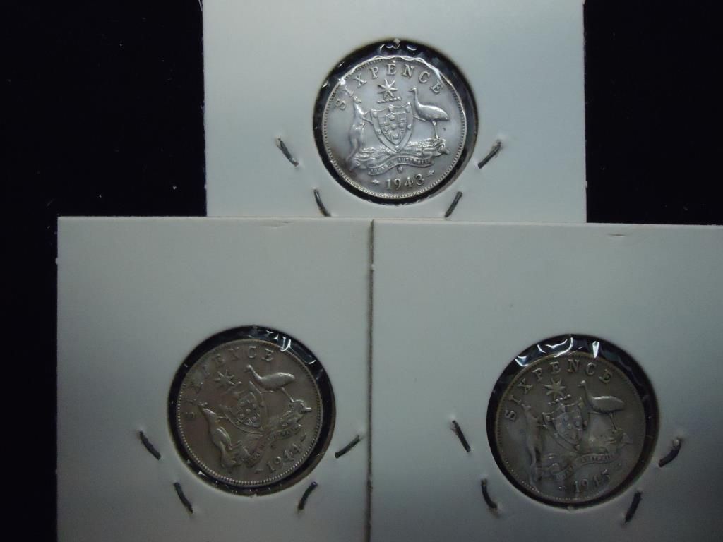 1943,44 & 45 AUSTRALIA SILVER 6 PENCE