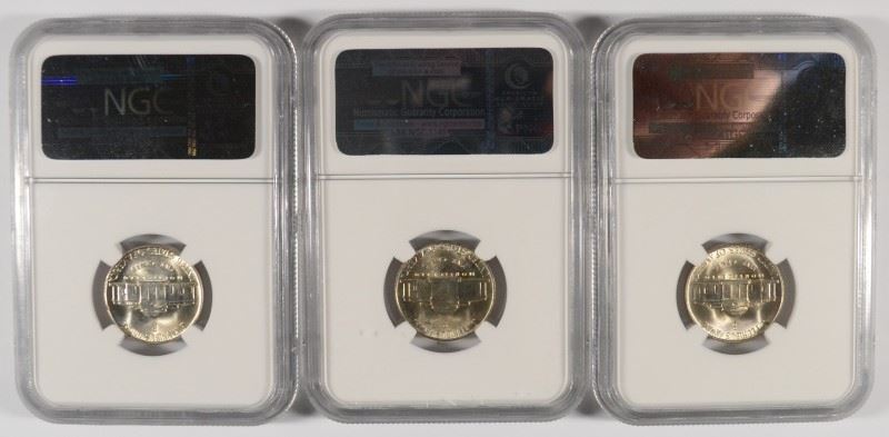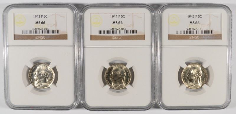 1943, 44, 45 JEFFERSON NICKELS NGC MS-66