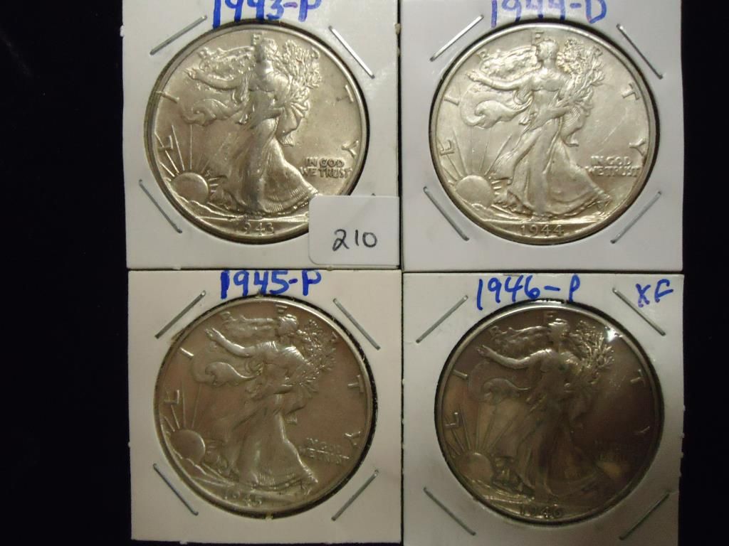 1943,44-D,45 & 46 WALKING LIBERTY HALF DOLLARS